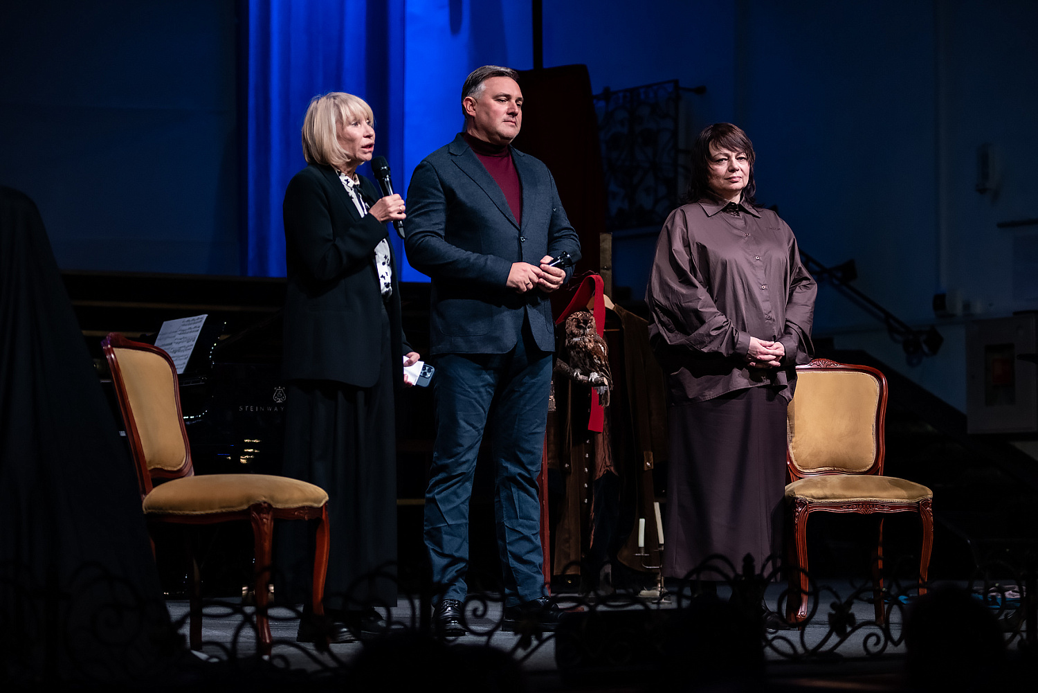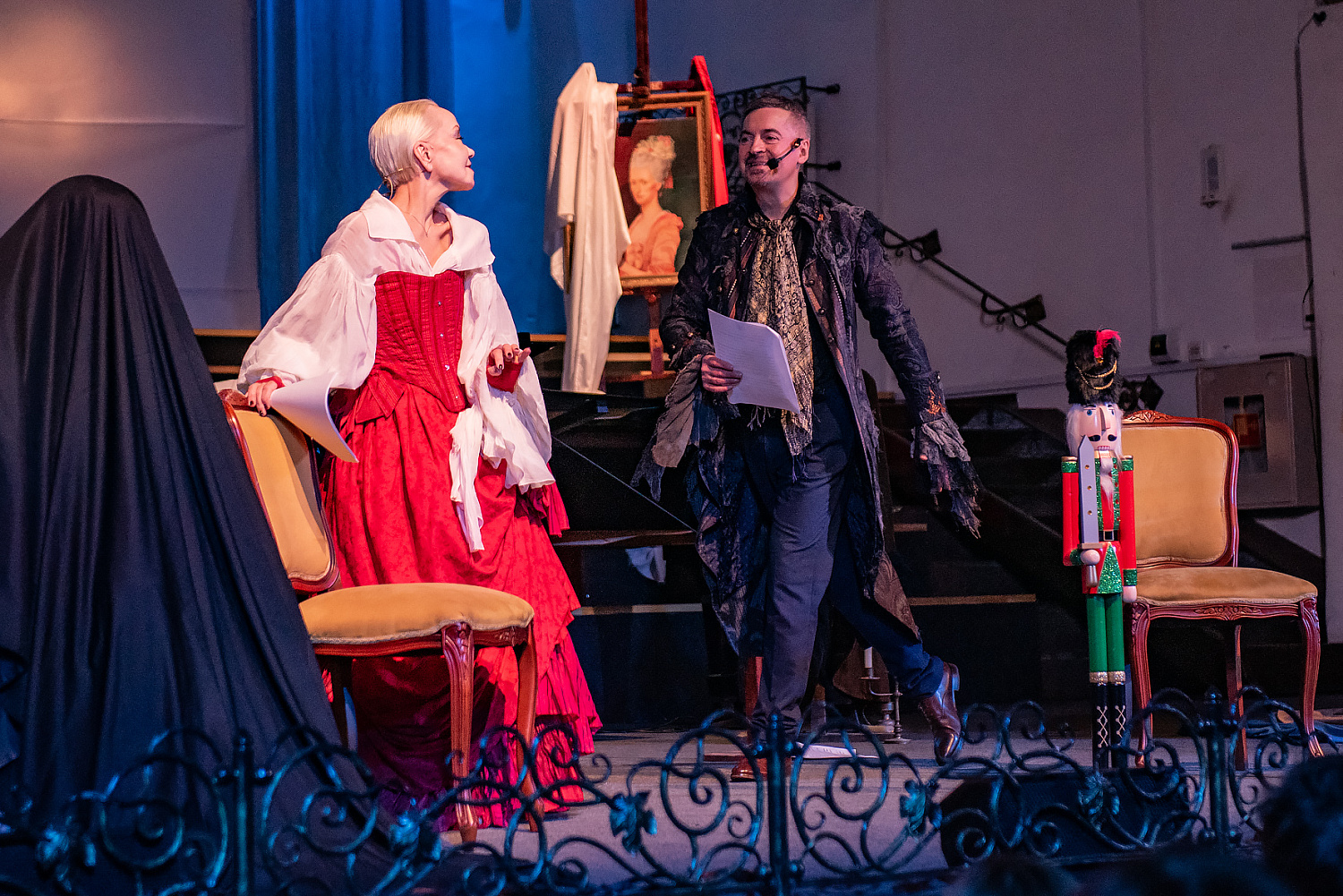 Сколько процентов правды, сколько вымысла в переписке “для трех голосов и органа”, что ведут на протяжении спектакля герои, — вопрос в финале решенный. Переписки между Михалиной и Юлией, Михалиной и Гофманом в этом виде не существовало — и на сцене, и в жизни. Ну а талант перемешивать реальность с вымыслом у Эрнста был всегда, за этим и пытается последовать Минченок, преследуя свои цели.