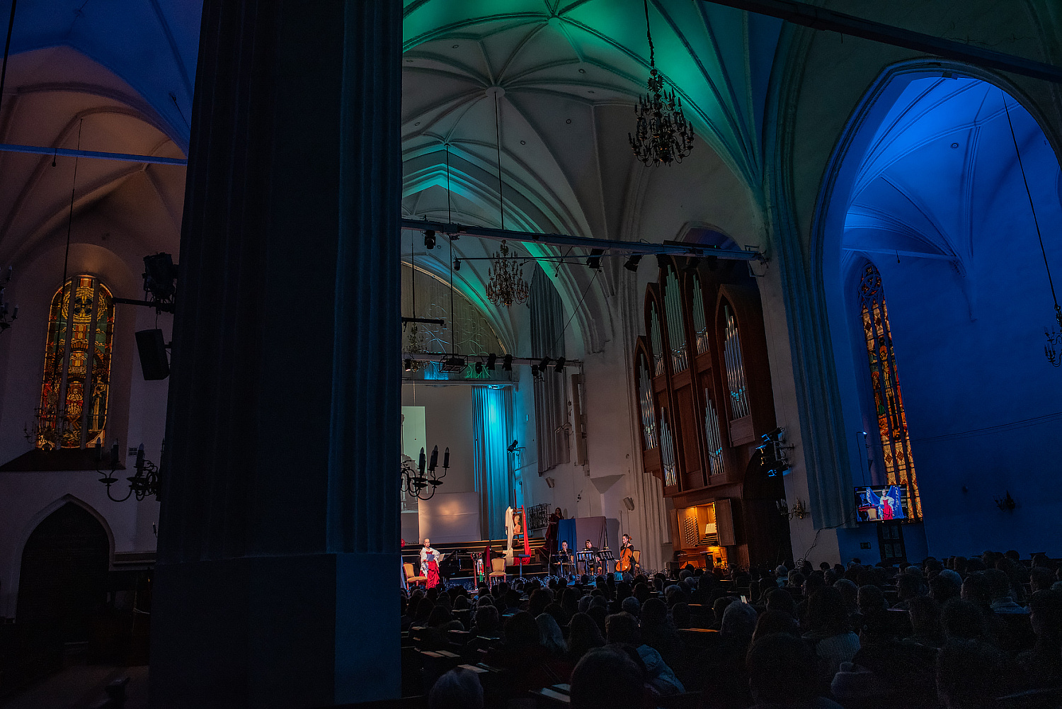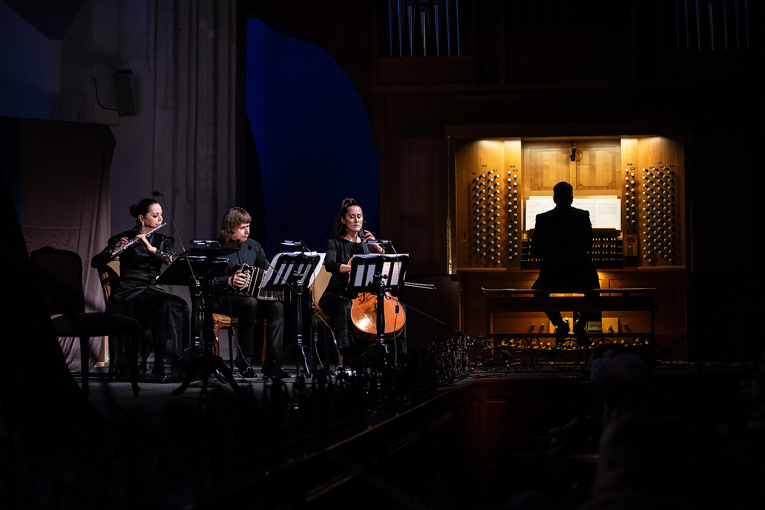 Главные роли в “Эликсире теней” исполнили заслуженная артистка России Евдокия Германова (Михалина Гофман), заслуженная артистка Республики Башкортостан, солистка театра “Новая опера” Елена Терентьева (Юлия Марк) и Дмитрий Минченок (Эрнст Теодор Амадей Гофман). Музыкальный контекст создали Александра Чарномская (виолончель), Ксения Авраменко (флейта), ️ Евгений Авраменко (орган, фортепиано) и Андрей Степаненко (бандонеон), выступивший аранжировщиком и музыкальным руководителем спектакля.