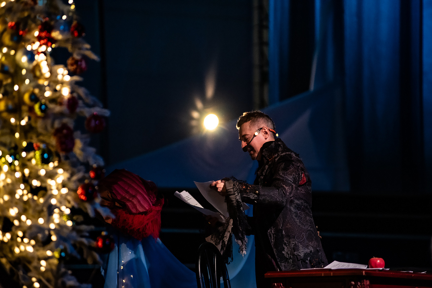 Спектакль, посвященный Эрнсту Гофману, представил драматург и режиссер, лауреат премии “Лавр”, ТЭФИ и премии Фонда Ирины Архиповой Дмитрий Минченок. Фокусом внимания стал не кенигсбергский, а бамбергский период Гофмана, где писатель создает свое альтер-эго — капельмейстера Иоганнеса Крейслера, работает в театре и дает частные уроки 13-летней Юлии Марк, в которую влюбляется. Об этой истории узнает жена Миша (Михалина Рорер-Тжчиньская), а что из этого следует — рассказывает Минченок, не разделяющий реальность и мистификацию до финала.
