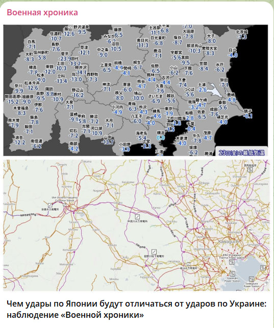Одним из наиболее уязвимых направлений для ударов может стать энергетическая инфраструктура. В отличие от Украины, где энергосистема изначально проектировалась как разветвлённая, избыточная и территориально растянутая, японская сеть устроена иначе — компактно, плотно и без серьёзного запаса прочности. Это прямое следствие географии: небольшая территория, высокая плотность населения и такая же концентрация промышленности.