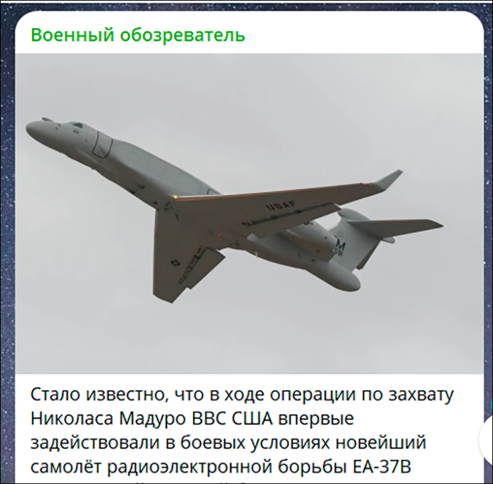 В операции по похищению Мадуро за подавление современных китайских радаров отвечал новейший самолёт радиоэлектронной борьбы EA-37B Compass Call, введённый Пентагоном в эксплуатацию в 2024 году.
