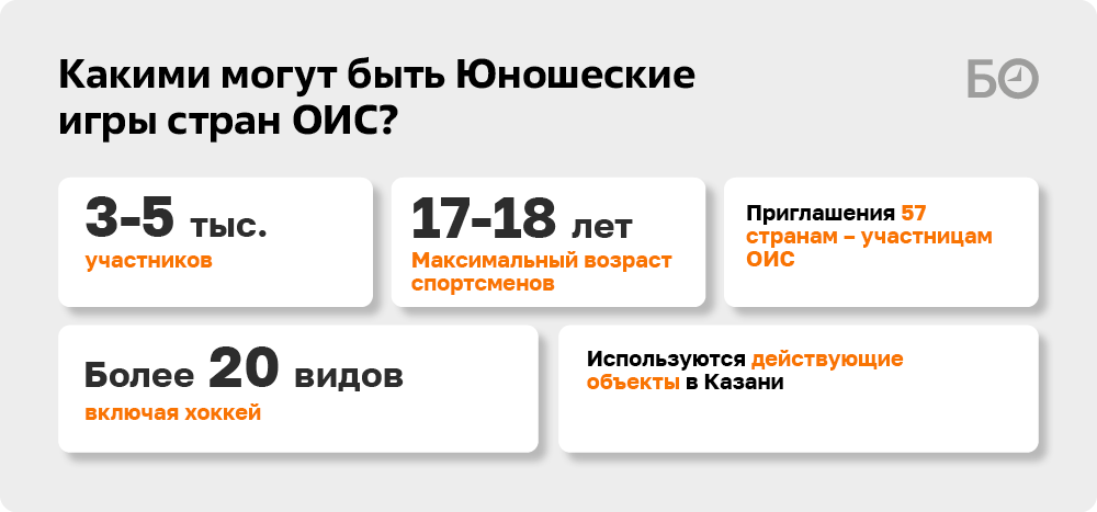 Итак, если все сложится удачно, юношеские Игры стран ОИС могут пройти в Казани в 2027 году. На такой срок, по нашим данным, нацеливаются в Татарстане. Срок это достаточно большой, возможны самые разные корректировки, но перечислим основные параметры турнира на данный момент. Планируется, что там будут участвовать спортсмены до 17–18 лет по более чем 20 видам спорта.