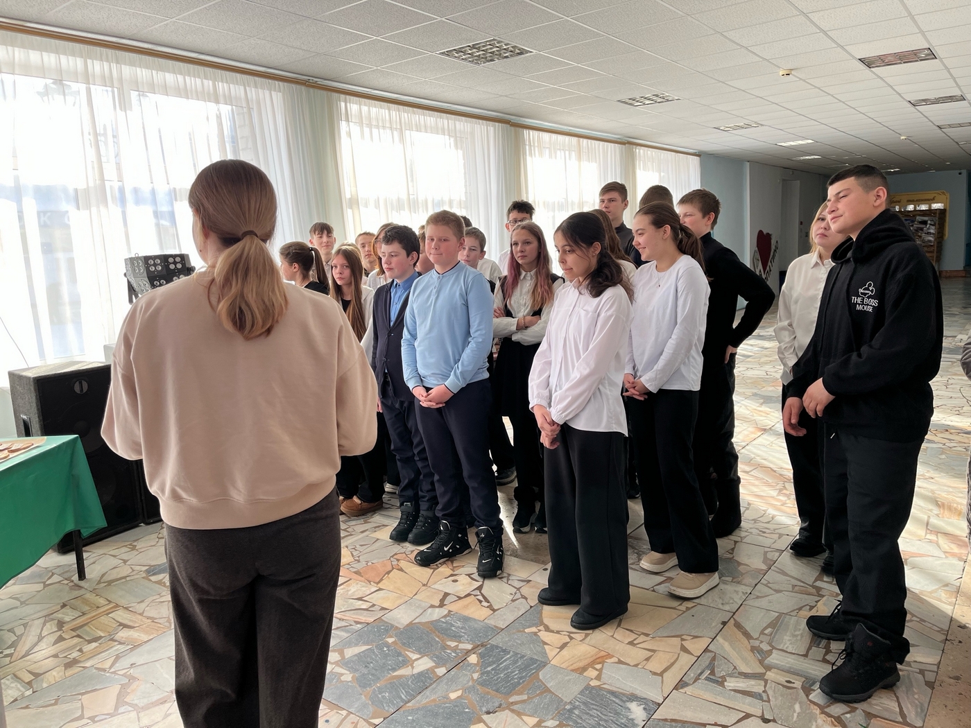 Ведущая акции рассказала присутствующим хронологию событий периода блокады Ленинграда, о подвиге жителей города, об учебе детей и помощи в защите города.