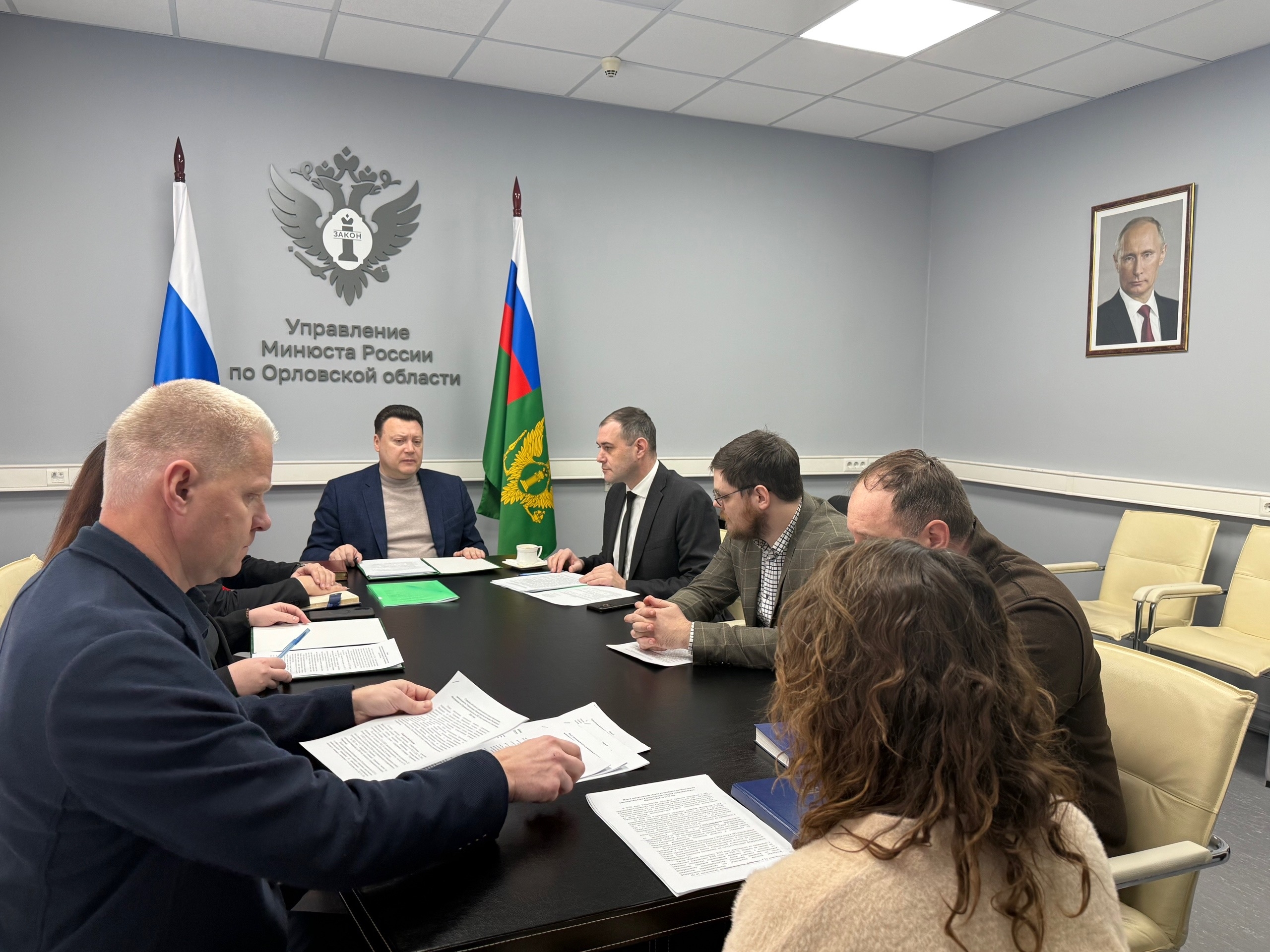 27 января 2026 года в Управлении было проведено оперативное совещание под руководством начальника Управления Минюста России по Орловской области Пузанкова Алексея Геннадьевича по теме: «Об итогах деятельности Управления в 2025 году и приоритетных задачах на 2026 год». В оперативном совещании принял участие Главный федеральный инспектор по Орловской области аппарата полномочного представителя Президента Российской Федерации в Центральном федеральном округе Голованев Эдуард Юрьевич. Особое внимание при обсуждении было уделено вопросам взаимодействия с некоммерческим сектором, антикоррупционной экспертизе нормативных правовых актов, а также вопросу оказания в регионе бесплатной юридической помощи в регионе и необходимости создания государственного юридического бюро в Орловской области