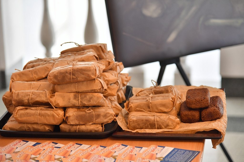 В рамках памятной акции, посвященной 82-й годовщине со дня полного освобождения Ленинграда от фашистской блокады, участникам раздали блокадный хлеб