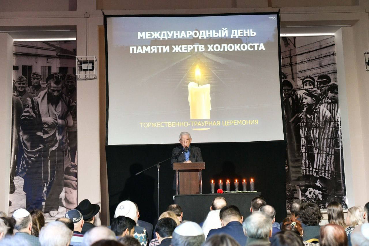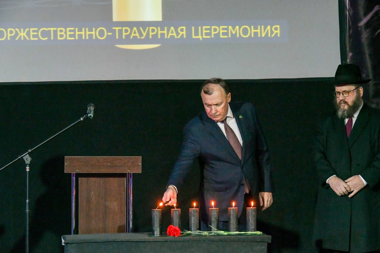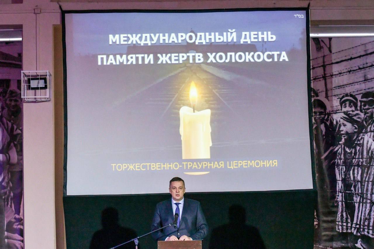«Сегодня в тридцатый раз мы собрались в этот день на торжественно-траурную церемонию, чтобы исполнить наш долг — сохранить память. Память о тех, чьи голоса были насильственно умолкшие, чьи судьбы оборвались в бездне самой чудовищной катастрофы в истории человечества — Холокоста. 81 год назад, 27 января 1945 года, солдаты Советской армии ценой невероятных усилий и жертв освободили узников нацистского концлагеря смерти — Освенцима. Мой отец Юрий Левин был военным корреспондентом, прошёл всю войну от Ржева до Берлина. Он писал о людях, сражавшихся с фашизмом, писал о войне и тех, кто защищал Родину. Он мне говорил: «Самое главное, чтобы не было войны, чтобы фашизм не возродился!». Но фашизм затаился. Наша задача — не допустить повторения страшных событий тех лет. Пусть же наша общая память станет не только печальным реквиемом, но и живой силой, объединяющей нас в стремлении построить будущее, в котором трагедия Холокоста никогда не сможет повториться!», - сказал в своем выступлении председатель Общественной палаты региона Александр Левин.