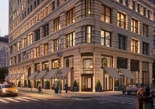 Небоскреб Flatiron Building построен в 1902 году на неудобном узком участке и на тот момент считался самым высоким зданием в городе. За счет использования металлического каркаса и новых технологий на его возведение и отделку терракотой и известняком ушел всего год. Фасад здания в стиле изящных искусств мгновенно стал символом индустриальной эпохи города и в конечном счете дал название окружающему району. Долгие годы здесь располагались магазины, рестораны и офисы, однако после кризиса 2020 года было принято решение изменить формат.
