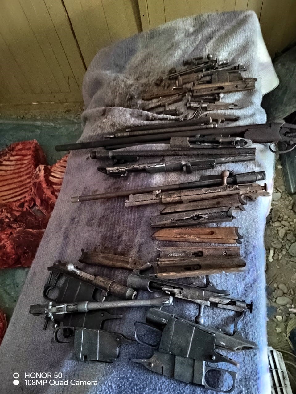 «В ходе оперативно-розыскных мероприятий сотрудниками ЛОП на станции Биробиджан был установлен и задержан местный житель. Оперативные сотрудники в хозяйственной постройке на придомовой территории обнаружили части огнестрельного оружия: механизмы нарезного огнестрельного оружия винтовки системы Мосина калибра 7,62 мм, части и механизмы охотничьей спортивной малокалиберной винтовки, а также стволы вышеуказанных винтовок с прицельными приспособлениями, укороченными путем термического воздействия.