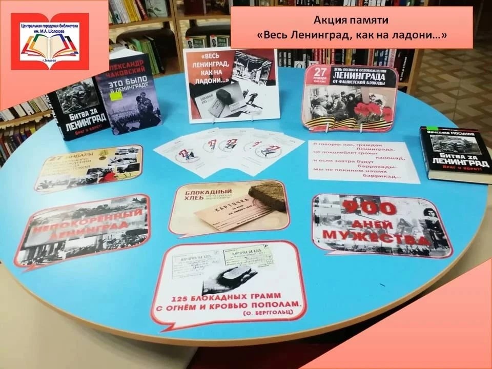 27 января — день полного освобождения Ленинграда от фашистской блокады. В эту памятную дату члены женсовета ФКУ ИК-1 ГУФСИН России по Ростовской области приняли участие в акции памяти «Весь Ленинград, как на ладони…», которая состоялась в Центральной городской библиотеке им. М.А. Шолохова в г. Зверево.