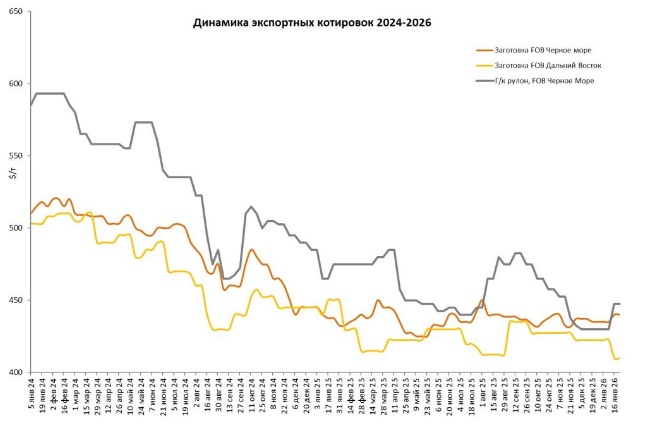 Стальная заготовка 440 $/т FOB Черное море, 410 $/т FOB Дальний Восток.
