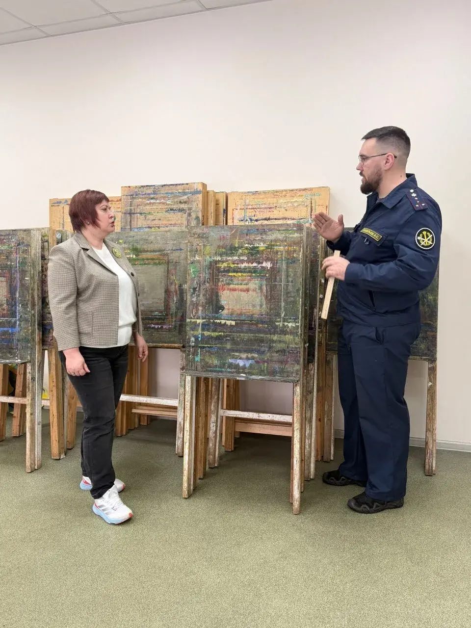 Старший мастер учебно-производственного участка № 3 ЦТАО ИК-7 УФСИН России по Новгородской области Александр Леонтьев провел рабочую встречу с заместителем директора по дополнительному образованию ГОАОУ «Гимназия №3» школы искусств Творческого центра «Визит» Юлией Полуяновой.