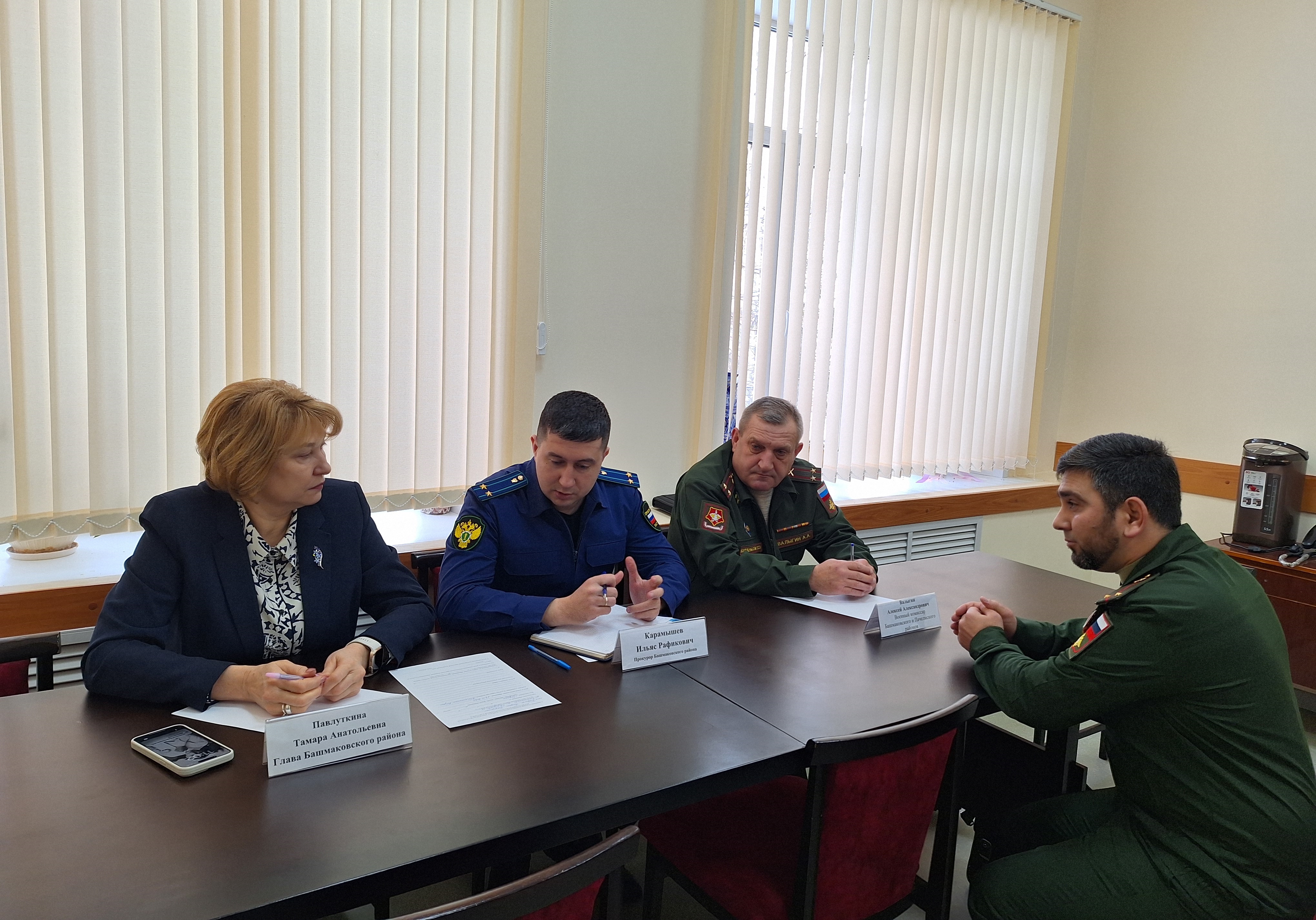 Сегодня в администрации Башмаковского района прошел важный прием участников специальной военной операции и семей совместно с представителями власти — прокурором Башмаковского района Ильясом Карамышевым, главой района Тамарой Павлуткиной и военным комиссаром Башмаковского и Пачелмского районам Алексеем Валыгиным. Во время встречи были рассмотрены вопросы, интересующие участников СВО и членов их семей.