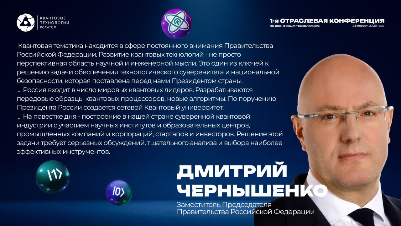 28 января 2026 года в Москве прошла Первая отраслевая конференция по квантовым технологиям Госкорпорации «Росатом». В ходе мероприятия обсуждался переход от квантовых инноваций к индустрии перспективных квантовых технологий. Был представлен анализ развития мировой квантовой науки, а также тренды применения квантовых технологий и задачи формирования кадров с необходимыми компетенциями.