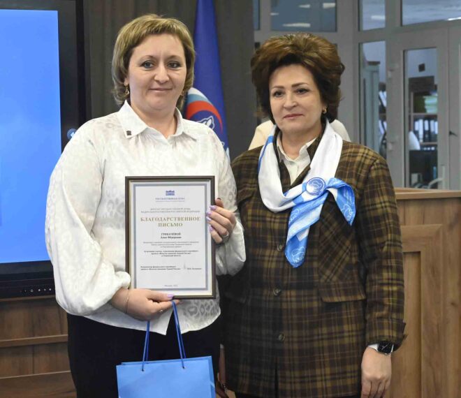 Светлана Иванова передала Анне Грибачевой Благодарственное письмо от депутата Государственной Думы