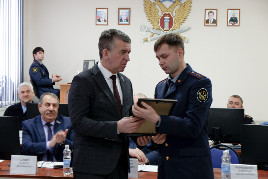 После доклада состоялась торжественная церемония: награды вручали начальник Управления Владимир Степанович Абрамчук, заместитель Председателя Законодательного Собрания Камчатского края Дмитрий Анатольевич Коростелев и заместитель председателя городской Думы Петропавловск-Камчатского городского округа Саргис Агасиевич Сароян.