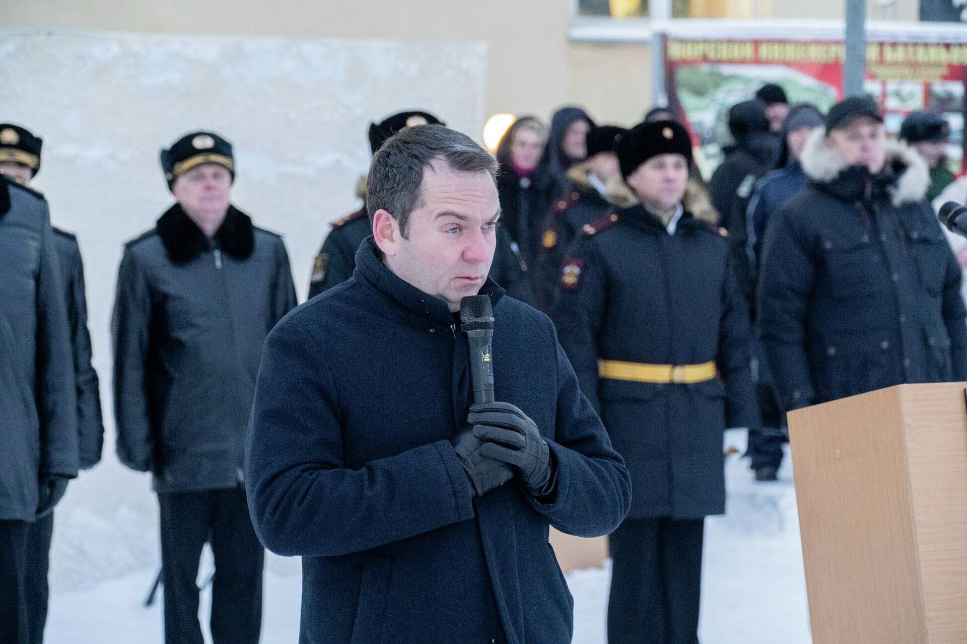 В торжественной церемонии открытия памятника приняли участие командующий Северным флотом Константин Кабанцов, губернатор Мурманской области Андрей Чибис, ветераны инженерных войск, воспитанники Мурманского нахимовского училища, а также военнослужащие полка и их семьи.