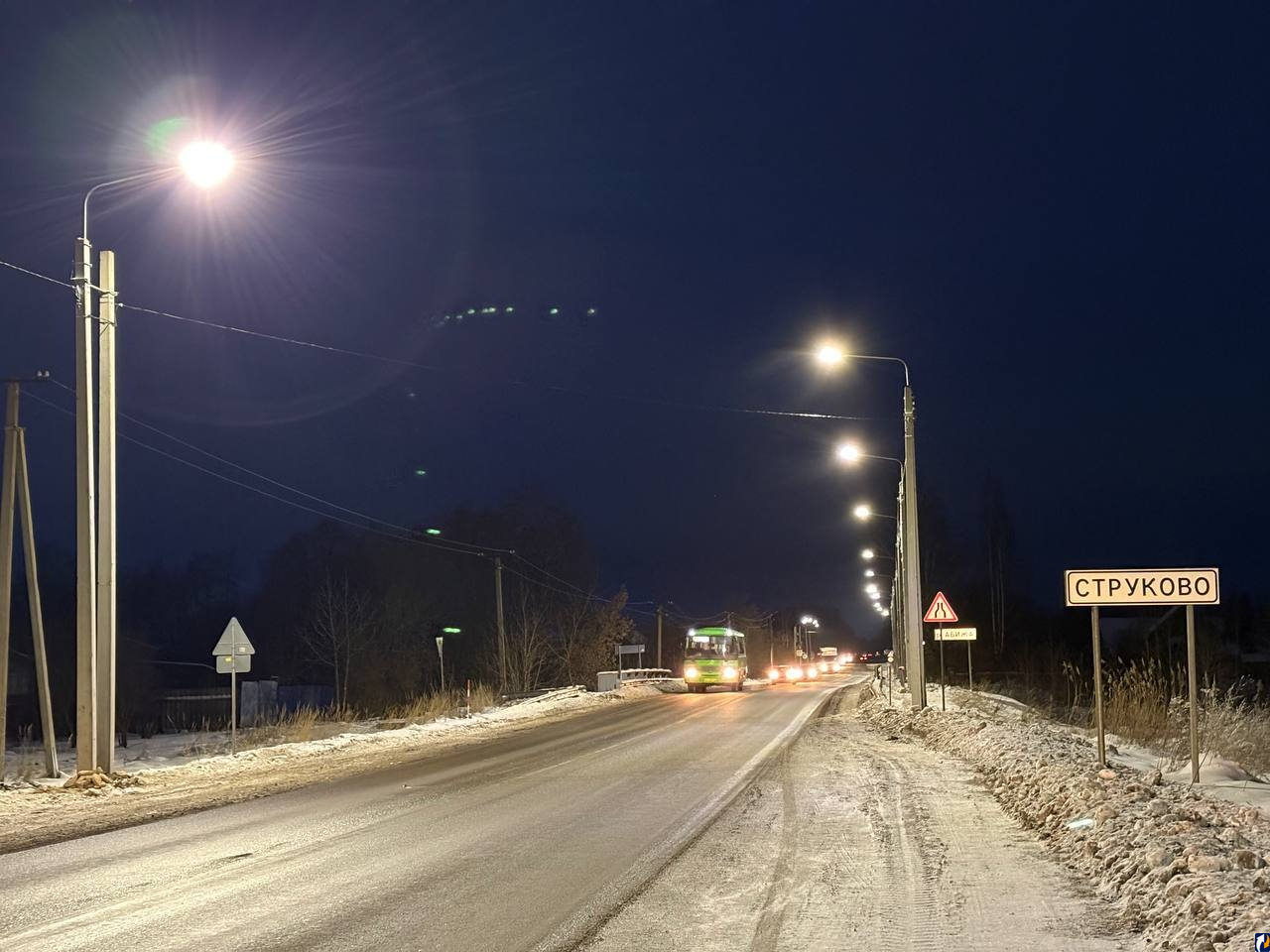 В начале 2026 года по поручению Министерства транспорта «Псковавтодором» в деевне Струково было выполнено устройство наружного совещения – ещё один населённый пункт стал безопаснее!