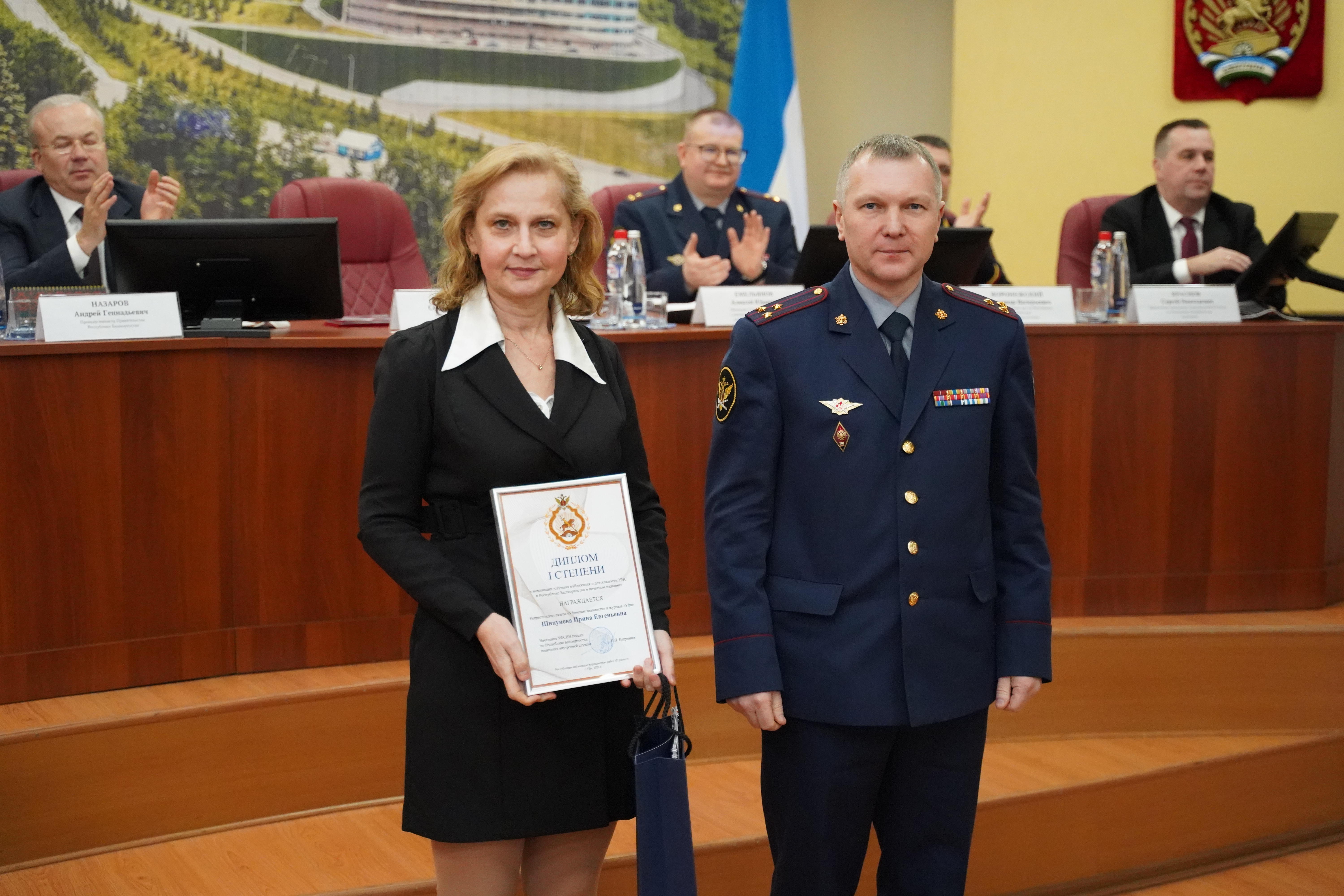 - в номинации «Лучшая публикация о деятельности УИС по Республике Башкортостан в печатном издании» - Шипунова Ирина Евгеньевна – корреспондент газеты «Уфимские ведомости» и журнала «Уфа».