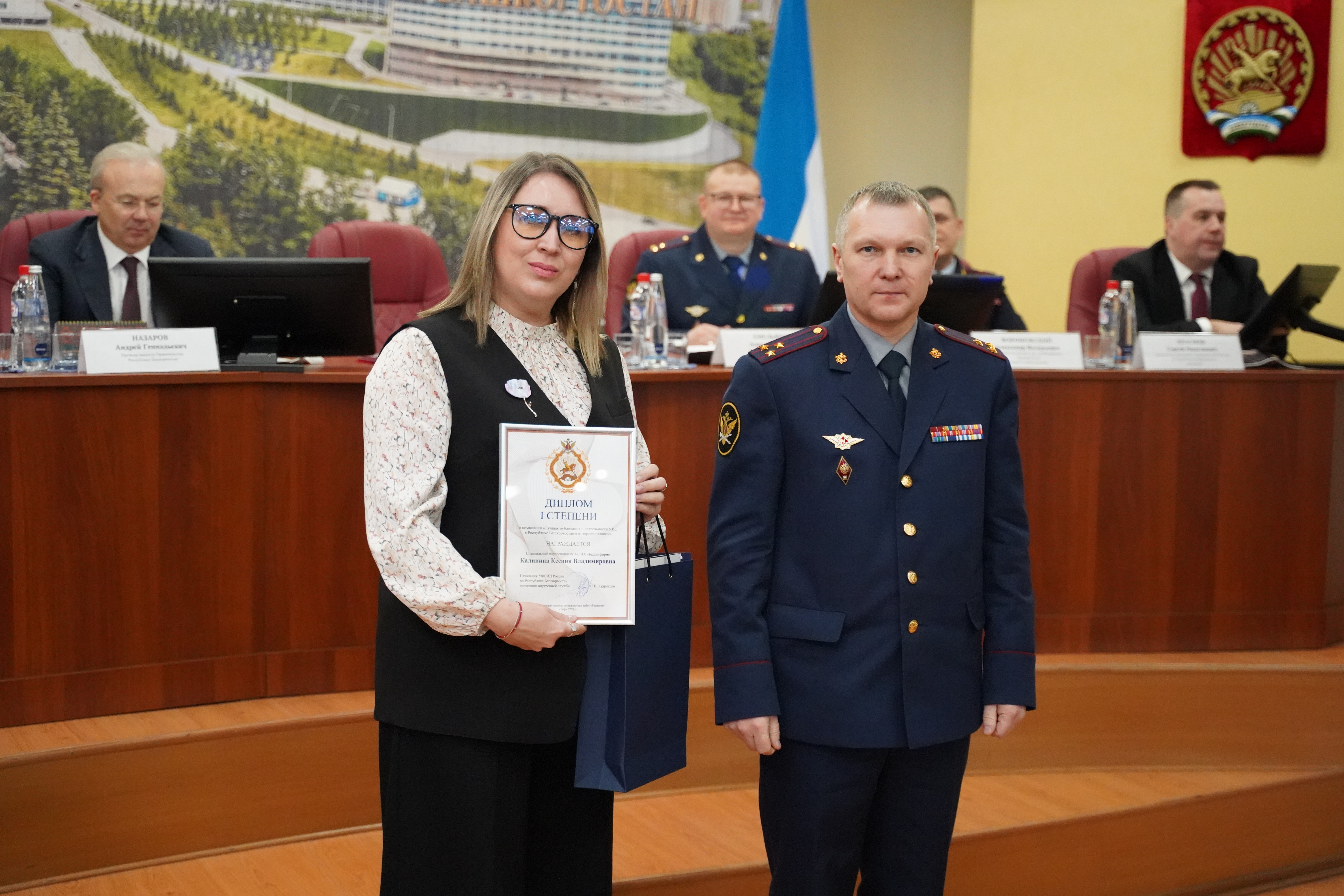 - в номинации «Лучшая публикация о деятельности УИС по Республике Башкортостан в интернет издании» - Калинина Ксения Владимировна, специальный корреспондент АО ИА «Башинформ».