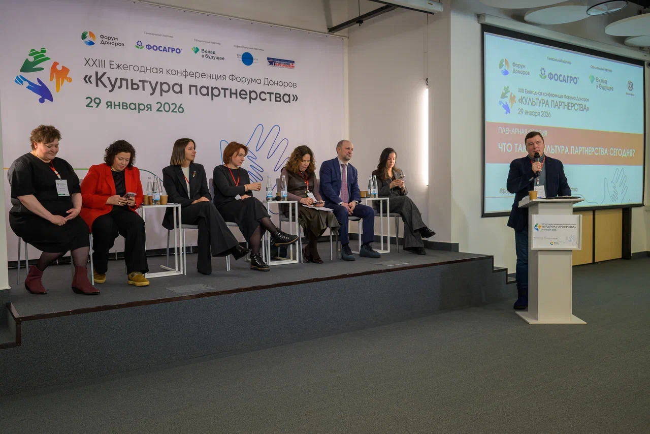 Ежегодная конференция Форума Доноров «Культура партнерства» состоялась в центре «Благосфера». Ее организатор – Ассоциация грантодающих организаций «Форум Доноров». Главной темой обсуждения стали основополагающие принципы партнерства в современном обществе, охватывающие взаимодействие между бизнесом, государственными органами, некоммерческими организациями, локальными сообществами и внутри Ассоциации.