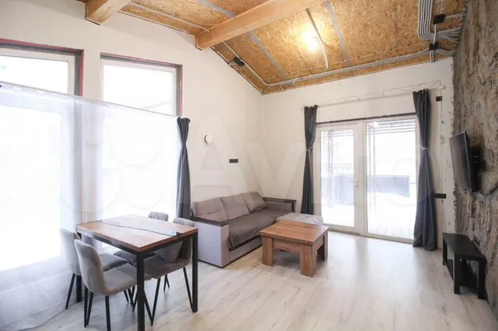 В доме провели косметический ремонт, это позволит новому владельцу оформить интерьер в своем стиле. Жилье включает две спальни, совмещенный санузел и просторную кухню-гостиную с выходом на террасу, которую можно в любой момент остеклить.