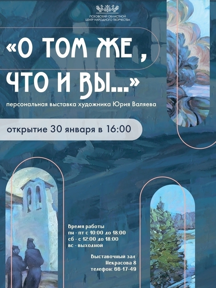 30 января в Доме ремёсел Пскова распахнет свои двери персональная выставка известного художника Юрия Валяева под интригующим названием «О том же, что и вы...». Как сообщили "МК в Пскове" в Центре туризма и творческих индустрий Пскова, на выставке будет представлено более 40 произведений автора.