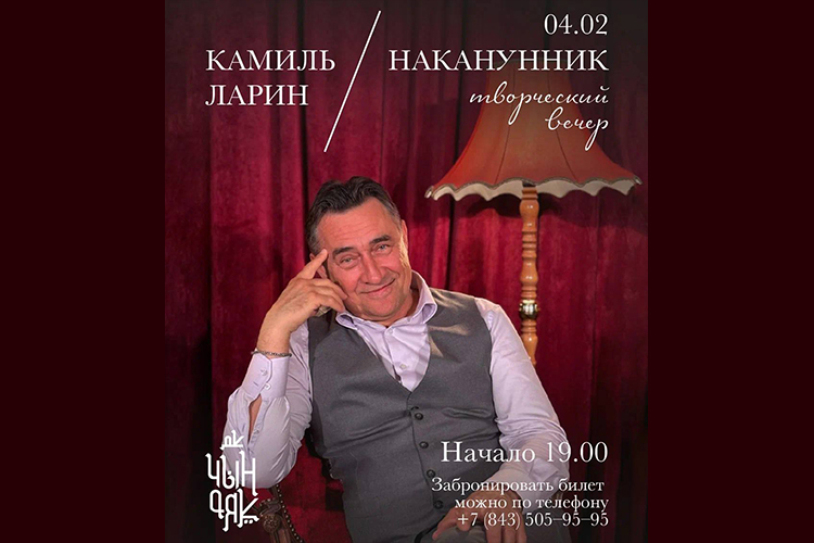 Популярный актер с татарскими корнями Камиль Ларин, помимо спектакля «Квартета И», проведет свою творческую встречу со зрителями. Гостей ждет вечер-откровение: честный разговор о жизни и творчестве, в котором артист раскроет тайны закулисья, скрытые от глаз широкой публики.