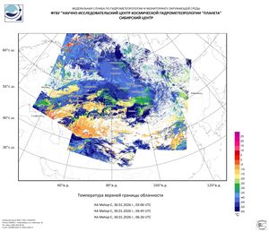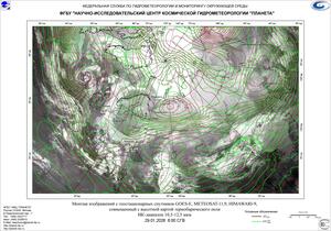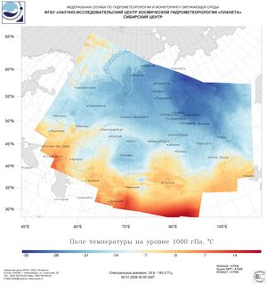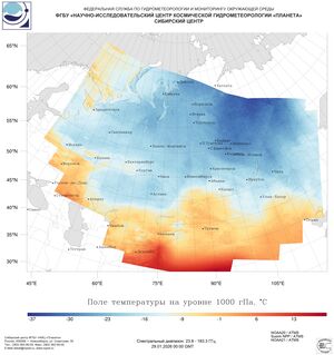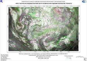 Температурный фон в поле повышенного атмосферного давления в ночь на 29 января оставался морозным, до -44…-47°С отмечалось в Эвенкийском М.Р., -41…-46°С в Иркутской области, -31…-36°С в Туруханском районе Красноярского края. И в ночь с 29 на 30 января преобладание процессов антициклогенеза приводило к быстрому выхолаживанию приземных слоев воздуха. Над Эвенкией столбики термометров опускались до отметок -49°С, в Иркутской области сохранялось до -41…-46°С.
