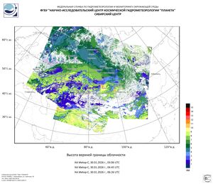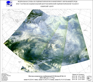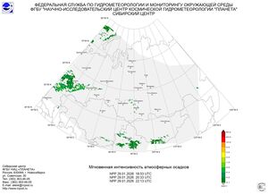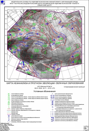 Смещение холодного антициклона в северо-восточную часть Сибирского федерального округа и тенденция к возобновлению западно-восточного переноса воздушных масс способствовали не только установлению более мягкого режима погоды в центральных и южных районах округа, но и возобновлению осадков. В условиях межширотного обмена воздухом и перераспределения тепла и влаги интенсивность осадков в Кемеровской области днем 29 числа достигала 4 мм, увеличиваясь в зоне волнового фронта в ночь на 30 января до 7 мм. И на юге Красноярского края количество выпавшего снега в ночные часы возросло до 9 мм.