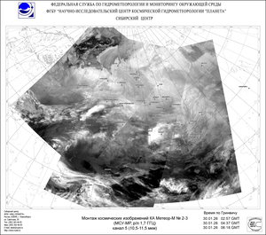 С продвижением облачного вихря с территории Северного Урала, характеризующего преобразование барического поля с тенденцией к падению давления у поверхности земли и усилению атмосферной циркуляции, на восток интенсивность осадков 30 января в отдельных районах центральной и южной части Красноярского края увеличится до сильных снегопадов.