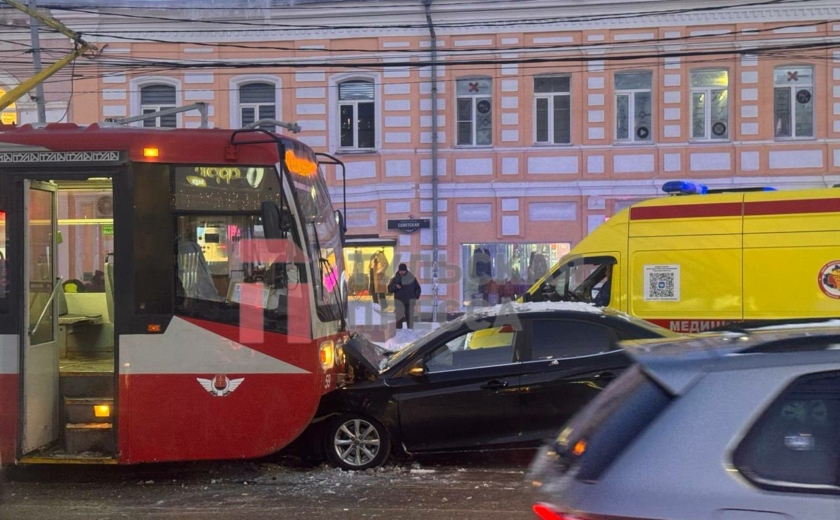 Жесткое столкновение трамвая и иномарки произошло в центре Тулы