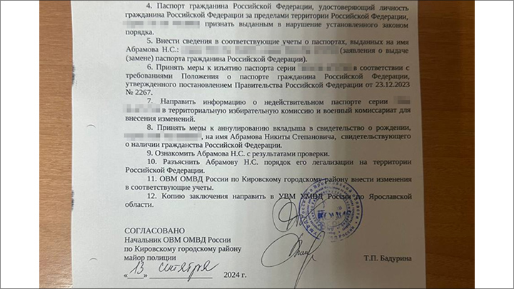 "В результате проверки, проведённой в рамках Федерального Закона от 28.04.2023 № 138-ФЗ "О гражданстве Российской Федерации", выявлен факт отсутствия гражданства Российской Федерации у мужчины 2004 г. р., паспорт на его имя признан недействительным и изъят. Одновременно с этим мужчине разъяснён дальнейший порядок приобретения гражданства Российской Федерации, в этом ему будет оказана всесторонняя поддержка и содействие".