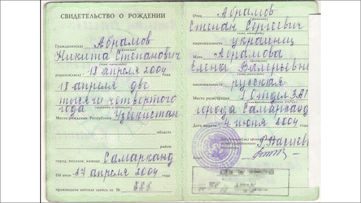 В полиции ему пояснили, что проводилась проверка с целью выявления людей, которые получили гражданство незаконно, и он оказался в их числе. Дескать, сотрудник МВД в 2004 году допустил ошибку: во вкладыше в свидетельство о рождении неправильно указана статья – основание для получения гражданства. Никите тогда едва исполнилось полгода.
