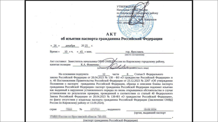 Паспорт признали недействительным ещё в 2024 году, только "забыли" предупредить и изъять // Фото предоставлено Царьграду