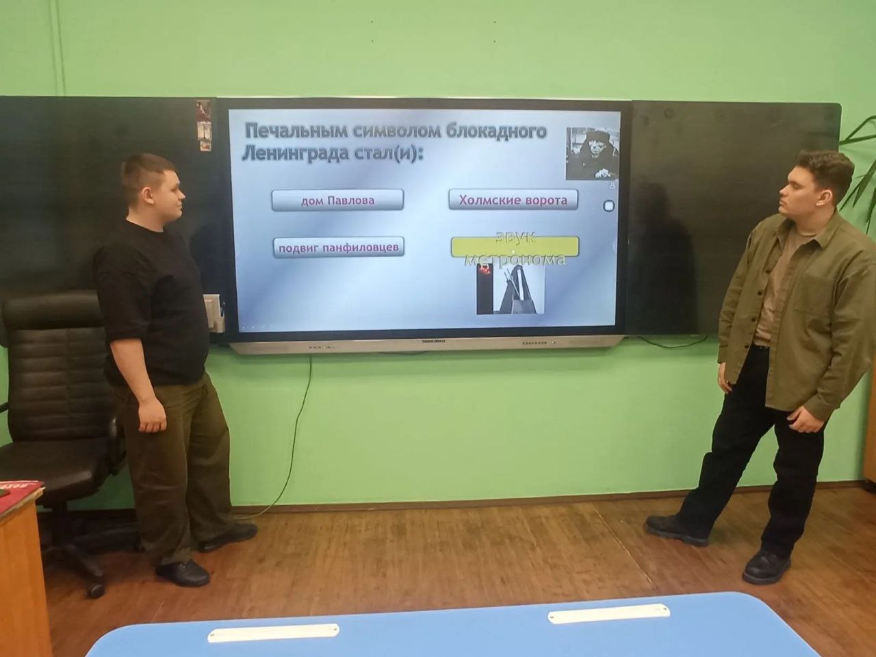 В Политехническом колледже № 8 им. И.Ф. Павлова в честь этой памятной даты, 28.01.2026, в целях воспитания уважения молодого поколения к историческому прошлому своего народа, пробуждения в них чувства сострадания и гордости за стойкость советского народа в период блокады Ленинграда и на протяжении всей Великой Отечественной войны, для студентов, библиотекарем Кушель О.А. совместно с преподавателем по истории Медведевой Ю.В. был проведен исторический час памяти «Подвиг великий и вечный».