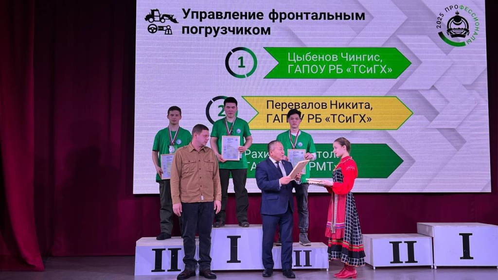 В прошлом году ныне бывший студент Бурятского техникума строительства и городского хозяйства Чингис Цыбенов завоевал первую для республики серебряную медаль всероссийского чемпионата «Профессионалы» в компетенции «Управление фронтальным погрузчиком». В борьбе за звание лучших свои силы пробовали 230 конкурсантов из 15 регионов России. Благодаря постоянной подготовке, усердию и целеустремлённости Чингис показал высокий уровень подготовки в своем ремесле, достойно представив республику. В качестве его наставника выступил опытный специалист Игорь Петров.