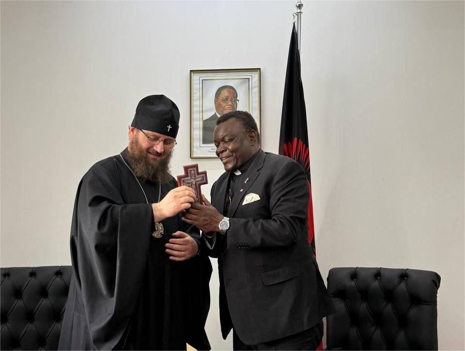 Митрополит Константин рассказал о миссии Русской Православной Церкви в Малави, в том числе о проектах оказания гуманитарной помощи голодающим. В завершение встречи экзарх подарил собеседнику памятный подарок.