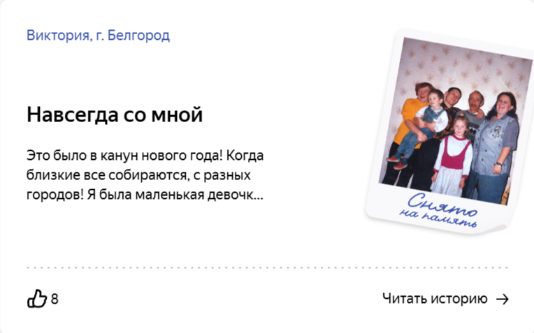 У белгородцев есть возможность рассказать свою историю всей стране в проекте «Снято на память». Актриса Юлия Меньшова и «Яндекс 360» собирают трогательные фотоистории, а авторов лучших из них пригласят на съёмки в Москву.