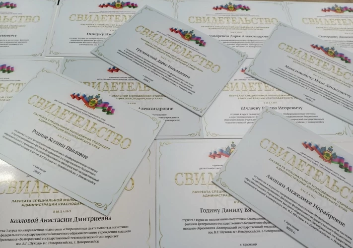 Глава города-героя Новороссийск Андрей Кравченко вручил почетные грамоты и свидетельства лауреатов специальной молодёжной стипендии администрации Краснодарского края 33 одарённым студентам Новороссийского филиала БГТУ им. В.Г. Шухова.