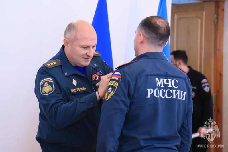 Александр Куренков вручил ведомственные награды отличившимся в службе сотрудникам. Также за активное взаимодействие в информационной работе почетную грамоту МЧС России получили замруководителя Администрации главы КБР - начальник Управления пресс-службы главы и Правительства республики и видеооператор телеканала «1 КБР».