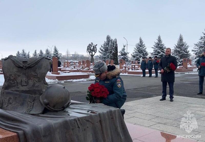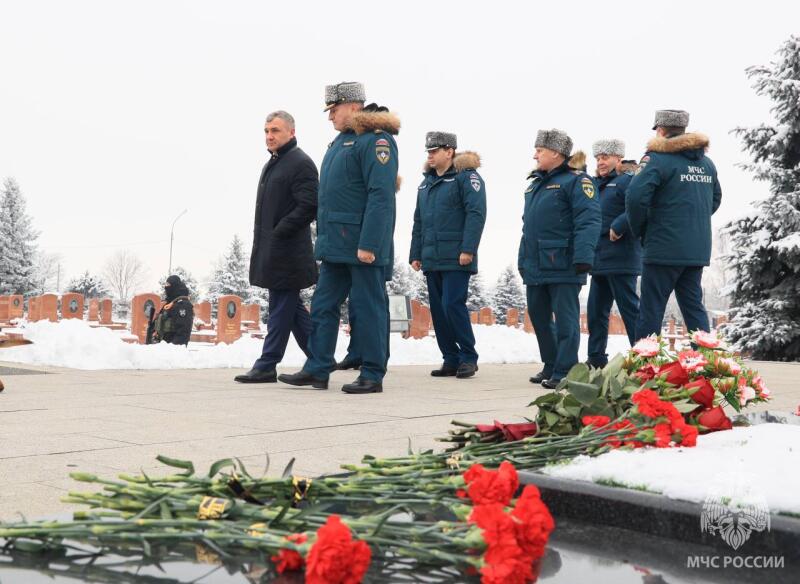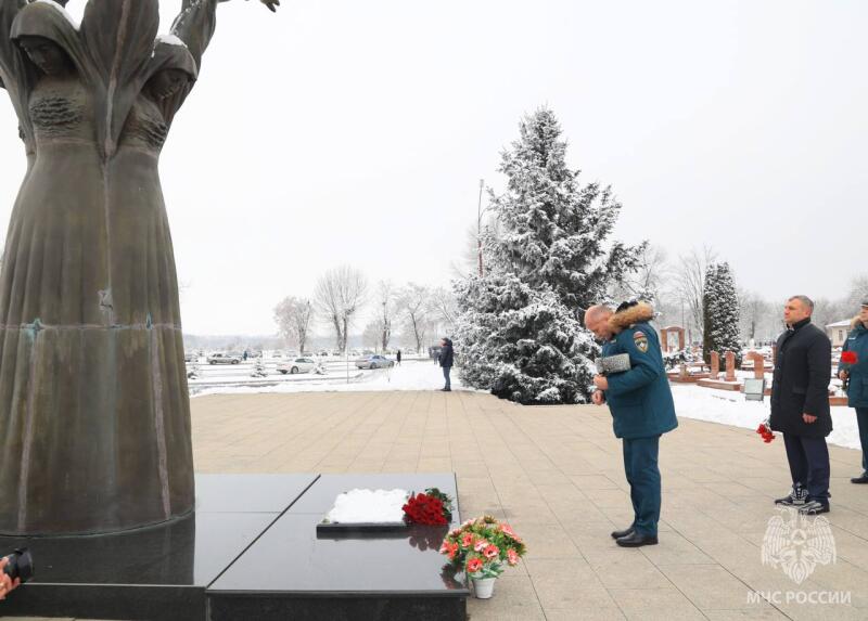 В Беслане Александр Куренков почтил память жертв теракта, произошедшего в сентябре 2004 года. Вместе с членами правительства республики он возложил цветы к мемориалу «Город ангелов». На мемориальном кладбище захоронены 266 из 334 погибших заложников. В 2005 году здесь установили 9-метровый монумент «Древо скорби». Композиция представляет собой дерево из четырех женских фигур, крона которого образована их распростертыми руками, держащими ангелов, олицетворяющих погибших детей. Здесь же находится памятник силовикам. Надпись на гранитной плите гласит: «Вы навсегда в сердце Беслана, Парни, закрывшие сердцем детей». В числе погибших трое сотрудников МЧС России: двое – спасатели отряда «Центроспас» и инспектор государственного пожарного надзора.