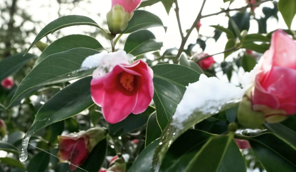 Несмотря на холодную погоду, камелии в префектуре Исикава распустились по расписанию: в Японии их сезон цветения приходится на время с конца января по начало марта. В саду в городе Ноноити растёт около 1700 камелий 440 разновидностей. Ярко-розовые цветы, покрытые снегом, привлекли в парк сотни туристов.