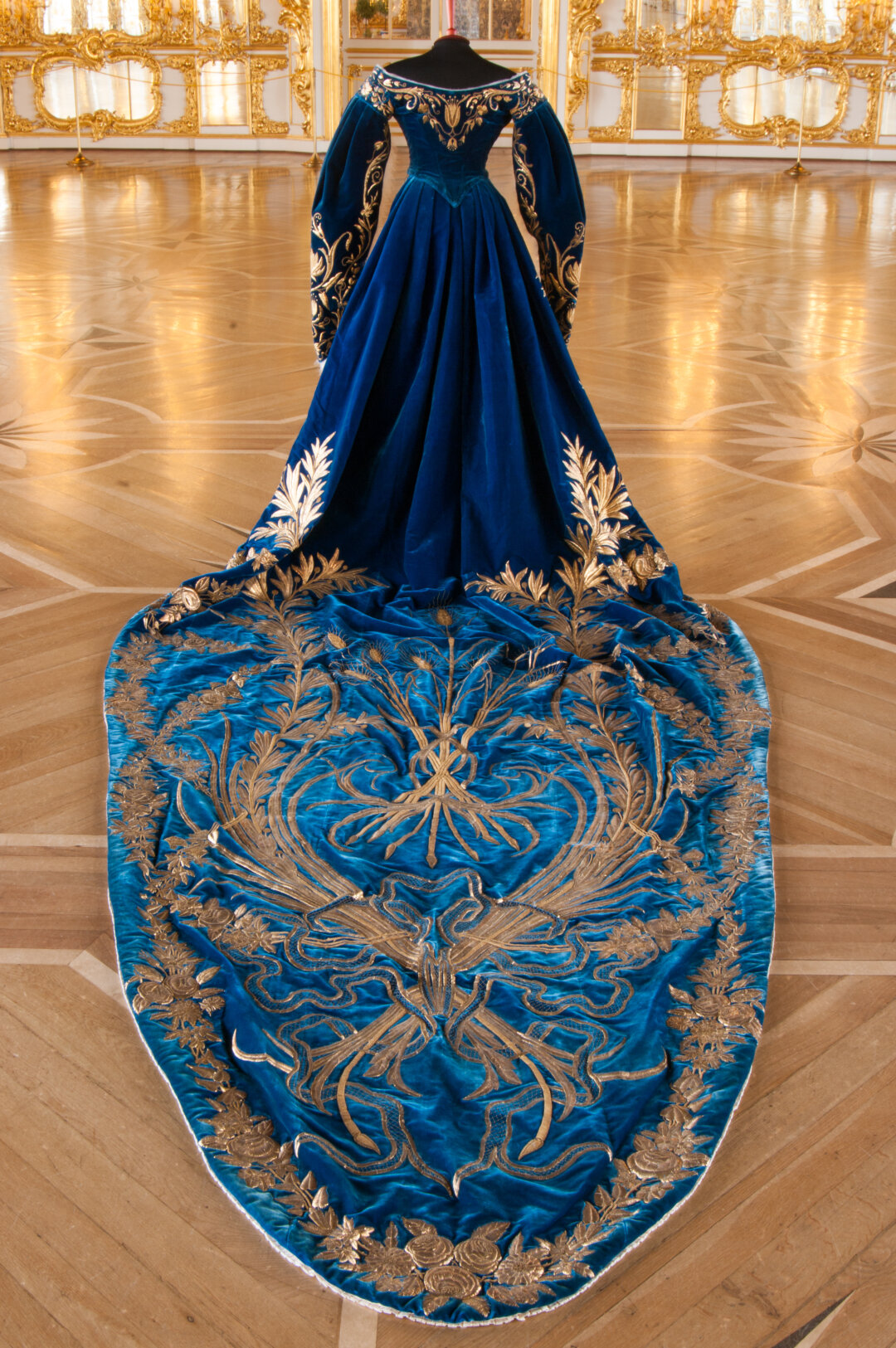 В залах Екатерининского дворца покажут более 60 предметов, связанных с искусством золотого шитья: от великокняжеских и фрейлинских платьев до крестьянских платков и кокошников.