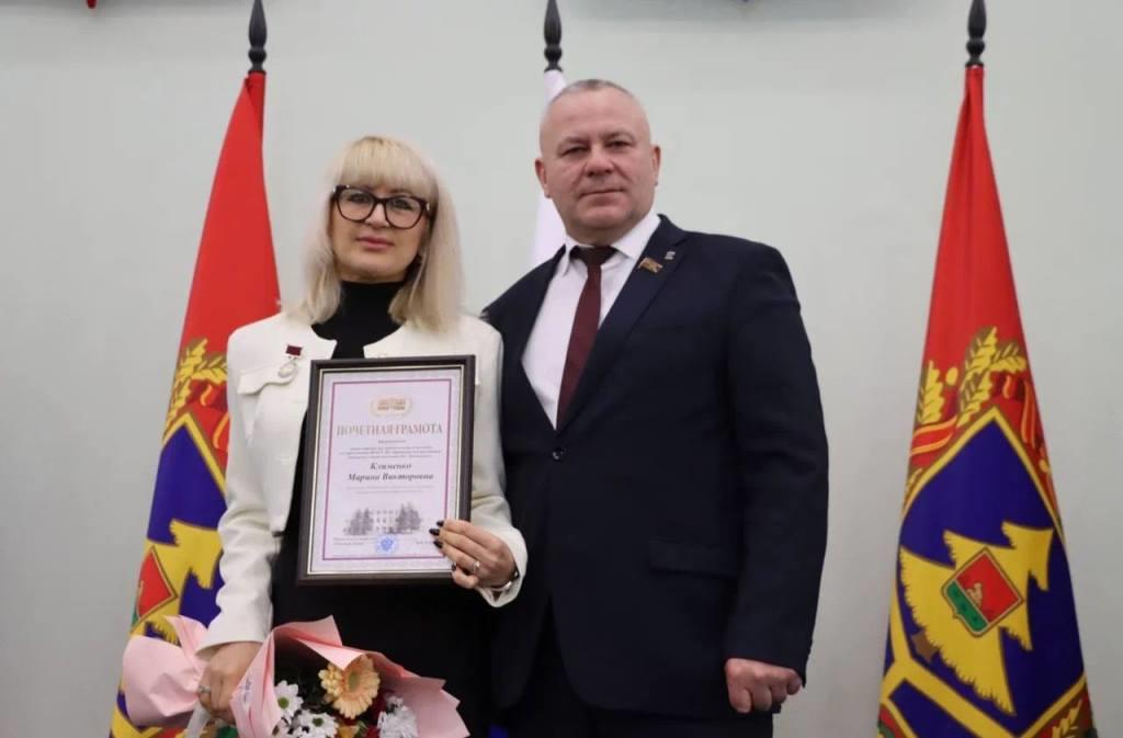 Почётной грамотой Брянской областной Думы доцент кафедры английского языка и методики его преподавания М.В. Клименко;