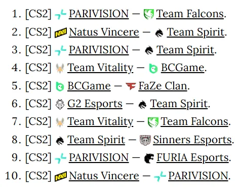 • В CS с начала 2025-го Team Spirit и Team Falcons провели между собой четыре матча