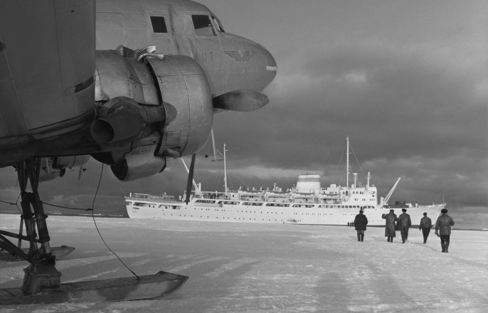 13 февраля 1956 – Начала работу советская антарктическая станция «Мирный». Место для строительства было выбрано в январе, построено 21 здание, аэродром, электростанция. Общая площадь сооружений превышала 2300 м². В последующие годы станция развивалась, расширялась. Среднегодовая температура около −11°C. Максимальная температура +6°C, минимальная −40°C. 220 дней в году сила ветра составляет более 15 м/с. По данным на 2025 год, коллектив станции круглогодично состоит из 15–20 человек. Фото: Виктор Кошевой/ТАСС. Декабрь 1964 г. Теплоход "Эстония" у ледового припая советской антарктической станции "Мирный".