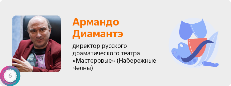 6 (14). Армандо Диамантэ — директор русского драматического театра «Мастеровые» (Набережные Челны), 53 года