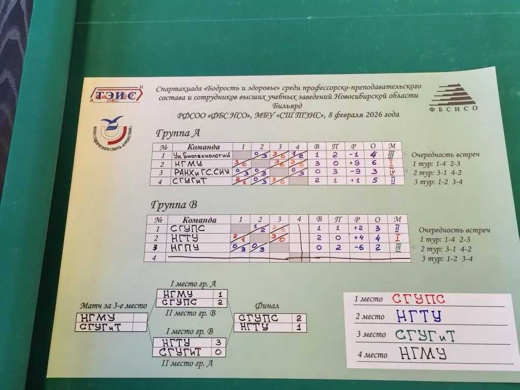 8 февраля на спартакиаде «Бодрость и здоровье» профессорско-преподавательского состава и сотрудников высших учебных заведений НСО прошли встречи по бильярду.