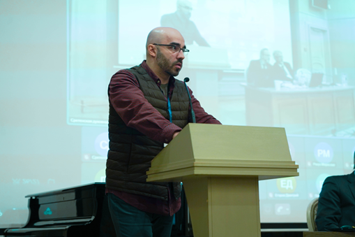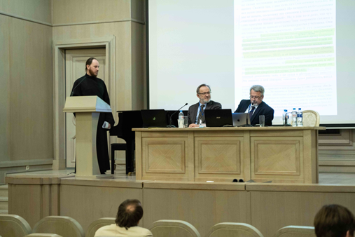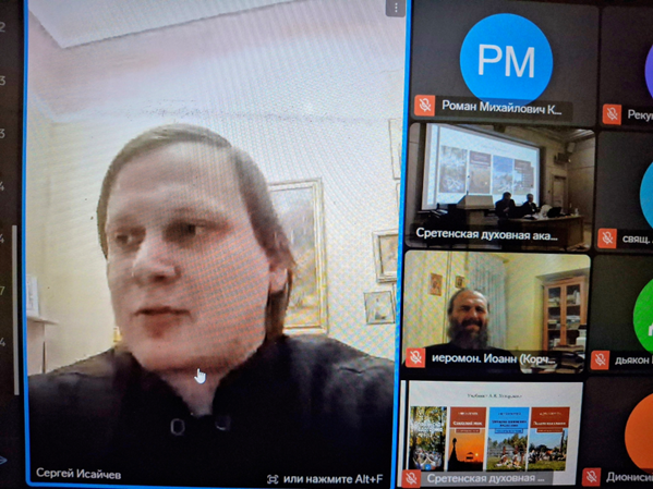 Диакон Даниил Якушев, студент магистратуры Московской духовной академии, представил свой доклад теме «Концепция Всебога в учении Д.А. Гасанова (волхва Богумила): парадоксы теологии и практики».