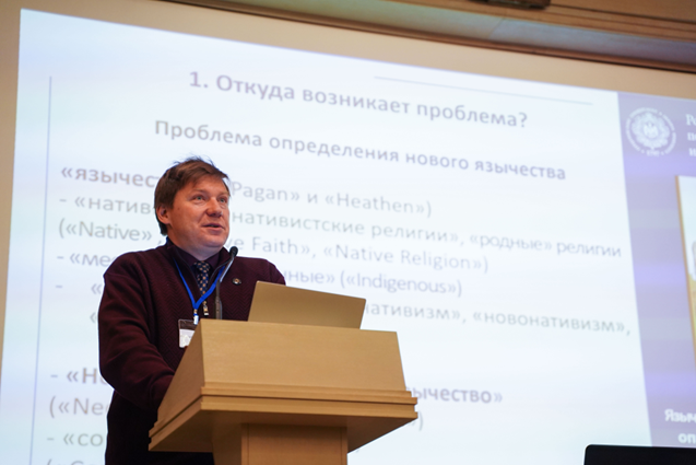Сергей Викторович Алексеев, доктор исторических наук. профессор кафедры истории НИЯУ МИФИ, представил доклад: «Степень аутентичности средневековых источников о славянском язычестве», к которым апеллируют современные неоязычники для реконструкции дохристианских верований. Он проанализировал содержание дошедших до нас памятников славянского язычества, в частности, рассмотрел проблему их аутентичности в связи с влиянием на них христианства. Общее состояние источников, по мнению докладчика, таково, что единой картины языческих славянских верований они не дают. Сведения, дошедшие до нашего времени, относятся в основном к внешней стороне языческих верований и в них почти отсутствует описание их внутреннего содержания, славянской мифологии, лишь содержится информация о некоторых богах и их функциях. Учитывая, что славяне были представлены многочисленными племенами и каждое из них имело своих богов, в настоящее время нет оснований говорить об общей славянской языческой мифологии и полная реконструкция славянских дохристианских верований невозможна.